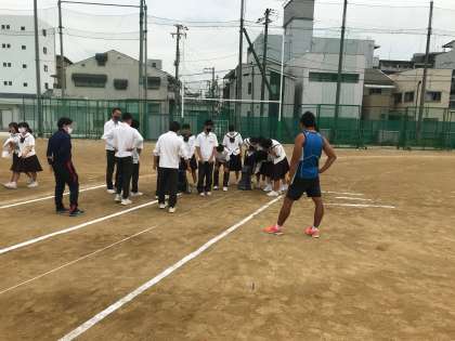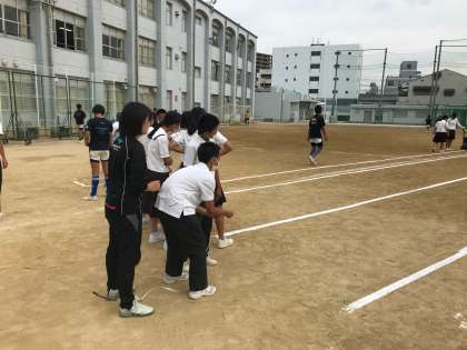 10月3日(土)土曜授業の放課後、体育大会にむけて、体育委員が集まり、トラック等の白線を引く練習をしました。