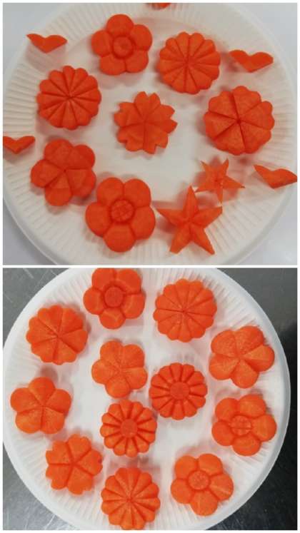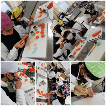 10月9日(金)、カービングの先生をお招きし、人参の飾り切りを学びました。細かい作業に苦戦するのかと思いきや、ぐんぐんレベルアップしていく生徒たち。最後には完成した作品を嬉しそうに見つめる姿がありました。