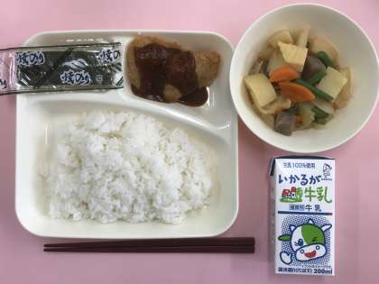 八丁味噌とは江戸時代から作られている豆味噌の銘柄です。今日の給食では、八丁味噌、赤味噌、砂糖、みりん、水を合わせた味噌ダレをかけていました。