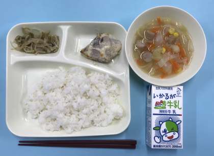 かつおのマリネ焼き、ウインナーと野菜のスープともやしとピーマンのソテーでした。