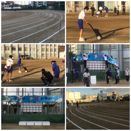 6時間の授業の後、明日行われる「第74回 体育大会」の前日準備が行われました。