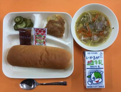 ツナポテトオムレツとスープ、きゅうりのバジル風味サラダでした。