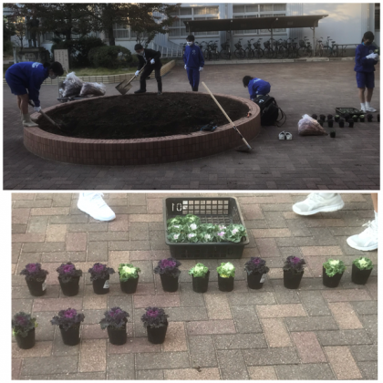 12日(木)の放課後、後期生徒会の皆さんが、円形花壇の整備をしてくれました。