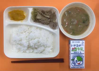 豚肉と舞茸の炒め物、つみれ汁とかぼちゃのういろでした。