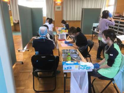 先週に引き続き、歯科検診が行われました。静かに待機して、順番を待っています。検診もスムーズに行われています。