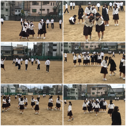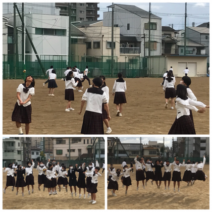 運動場にカメラを向けていると、こちらに合図する女子のグループがありました。1,2,3で一斉にジャンプ。それを見ていた隣のグループも1,2,3!