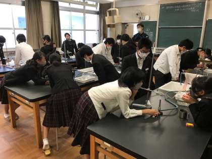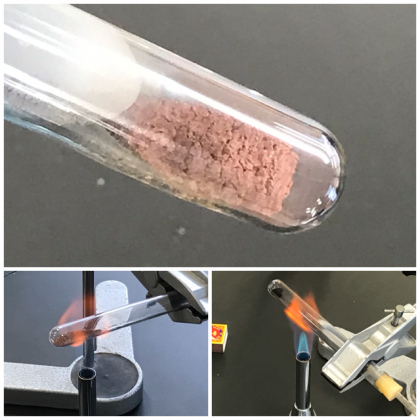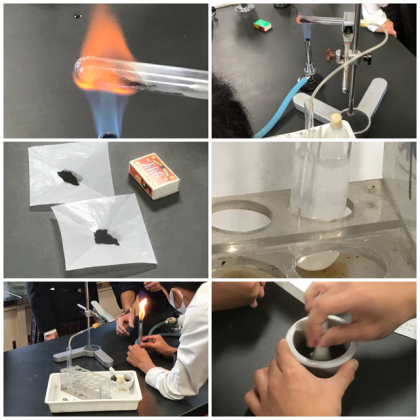 理科室で「酸化銅と活性炭の混合物を加熱してできる物質を調べる」実験が行われていました。