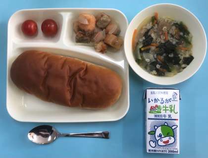 今日の給食では、薄切りにした玉ねぎとりんご酢、オリーヴ油、白ワインなどで作ったマリネソースを酒に絡ませた「鮭のマリネ」でした。