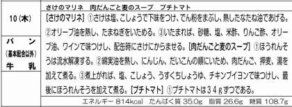 鮭のマリネ、肉団子と麦のスープとプチトマトでした。