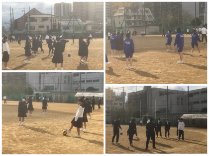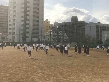 さすがです。大人たちが寒さに震える中、中学生は運動場を駆け巡っています。