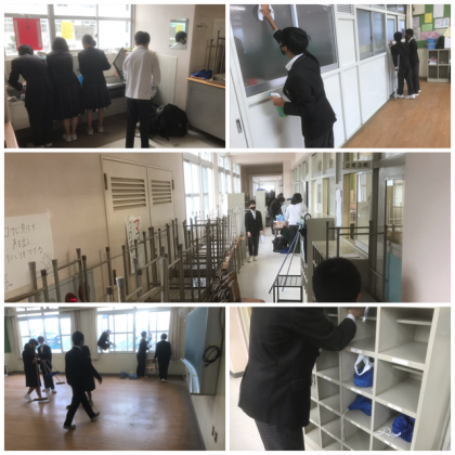 学期末を明日に控えて、大掃除をおこないました。今年お世話になった教室や廊下、トイレをきれいにしました。