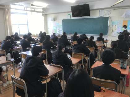 例年、体育館で行われる式ですが、今年はコロナの関係で、放送による終業式となりました。