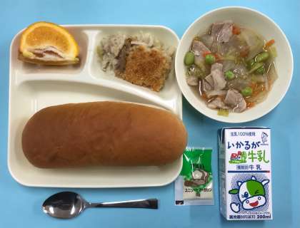 今日は、コッペパン(マーガリン)と牛乳。