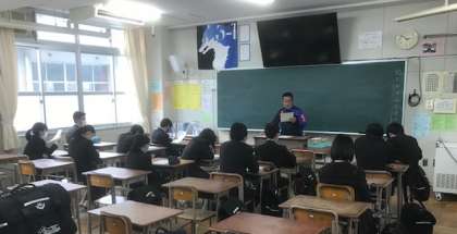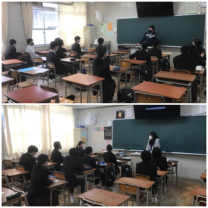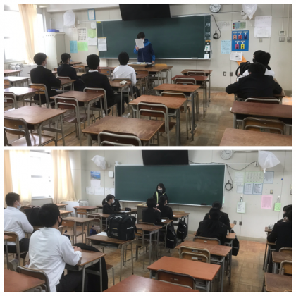 来週の公立一般選抜の出願に向けての事前指導が行われました。学校別に分かれて、教室で行いました。