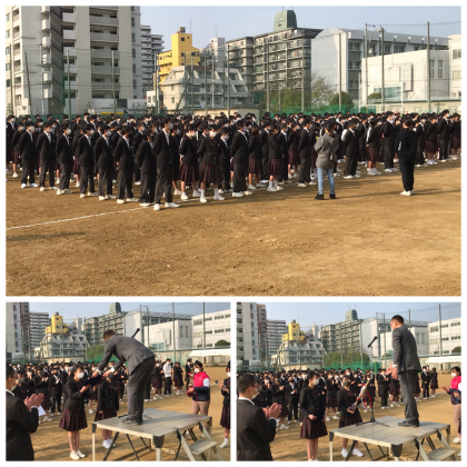 先週末に3年生が卒業し、今朝は1,2年生だけの全校集会になりました。
