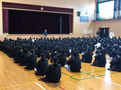 春休みを前に、生活、学習、健康面についての注意喚起のため学年集会を開きました。