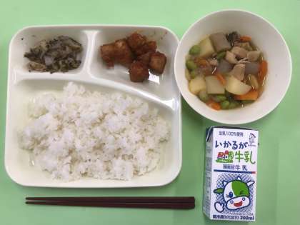 今日は、ご飯に牛乳。