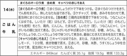 マグロのオーロラ煮、含め煮とキャベツの赤じそ和えでした。