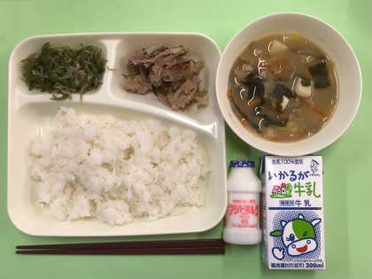 今日は、ご飯に牛乳。