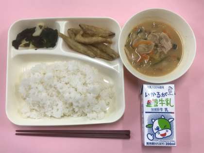 きびなごのてんぷら、豚汁とわかたけ煮でした。