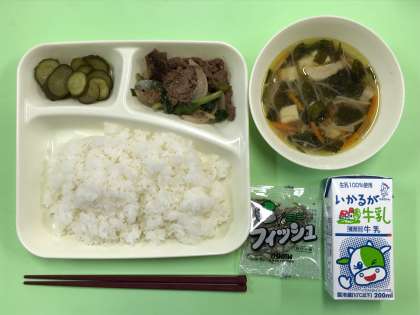 プルコギ、豆腐のスープ、きゅうりの甘酢漬けとミニフィッシュでした。
