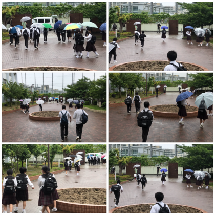 小雨だったので、そのまま濡れて帰る生徒もいました。