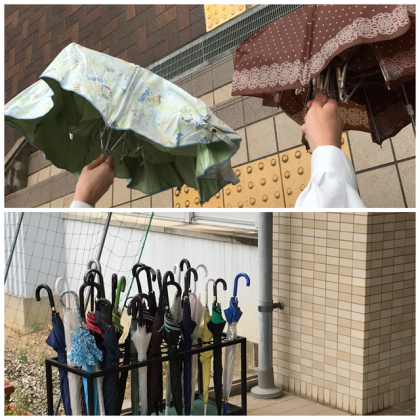 急遽、玄関の傘立てに「貸出用傘」を準備しましたが、小雨だったり、周知ができていなかったりで利用者は、少なかったです。