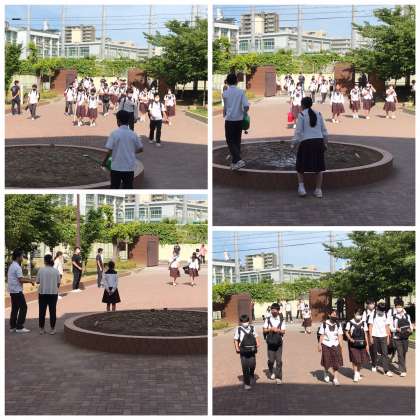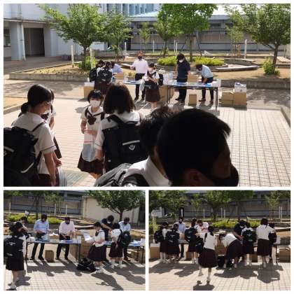 今朝は、「水着の販売」が中庭で行われました。今日は、女子生徒販売日。明日は、男子生徒販売日になっています。