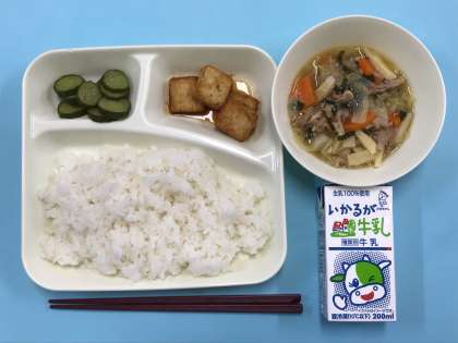 中華煮と厚揚げのピリ辛醤油かけ、きゅうりの中華あえでした。