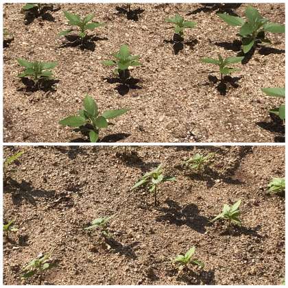 虫に喰われたせいか、一部の苗が枯れていますが大きくなっています。