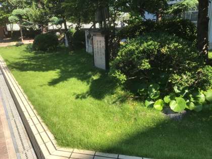 いつの間にか、枯れて茶色かった芝生がきれいな緑色になっています。