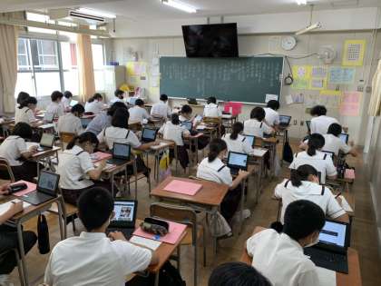5限の学習の後、6限は各自が一人1台パソコンを使って、興味のある学校や行きたい学校を検索して、どの様な事が学べるのか?通学方法は?などを調べました。