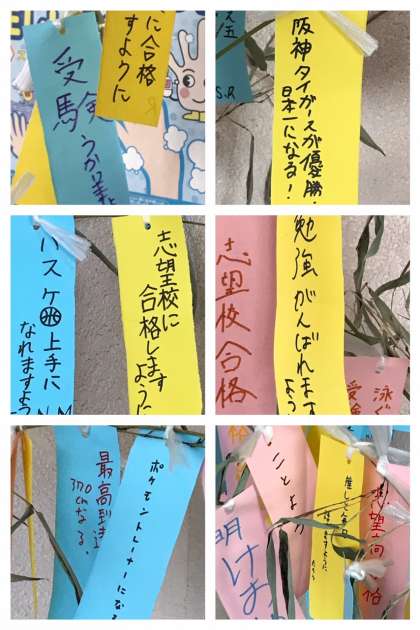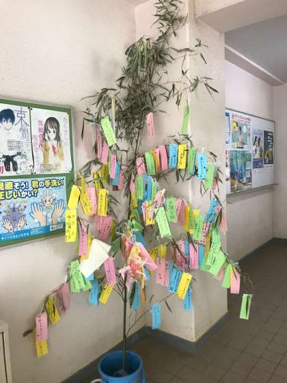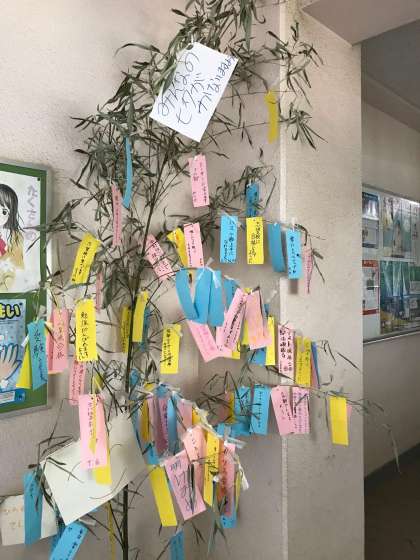 その横には短冊が置かれており、生徒が自由に願い事を書いて吊るしています。