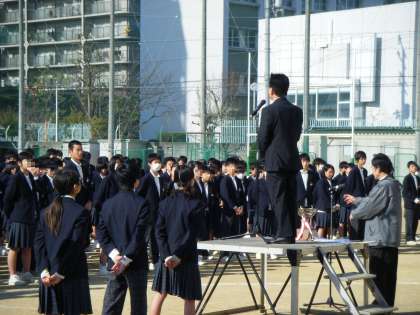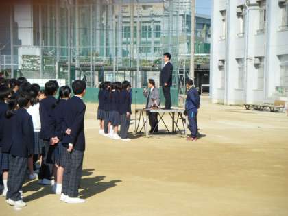 24日(火)に平成26年度の修了式が、少し肌寒くはありましたが、太陽の光がさすと少し春の訪れを感じる中、運動場にて実施されました。