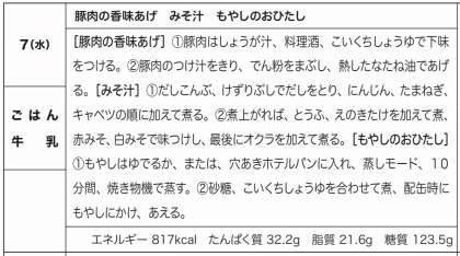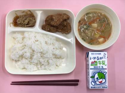 豚肉の香味あげ、みそ汁ともやしのおひたしでした。