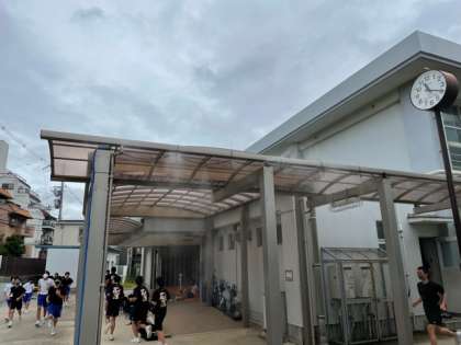 以前、体育館前にスプリンクラーが設置されていたのですが、この度ミストにランクアップしました。