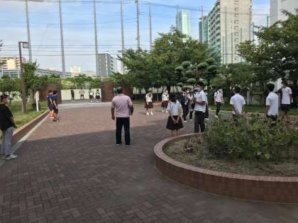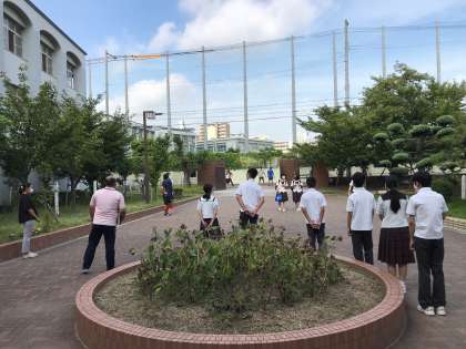 お天気が続いています。いよいよ今日から授業がスタートします。熱中症に気をつけて、水分補給をしましょう?