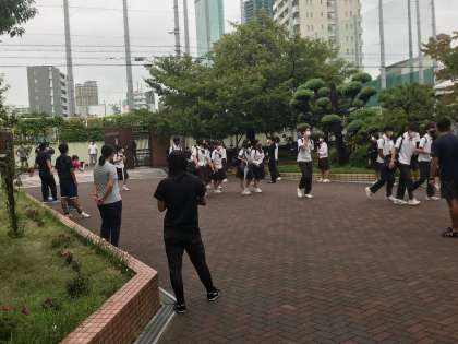 朝方まで雨が降っていましたが、登校時にはあがっていました。
