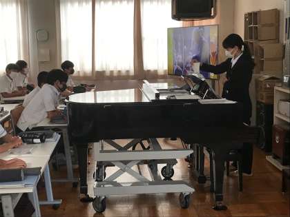 4時間目に2年1組の音楽の授業で、実習生が研究授業を行いました。