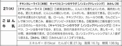 今日は、チキンカレー、キャベツとコーンのサラダとみかん(冷凍)でした。