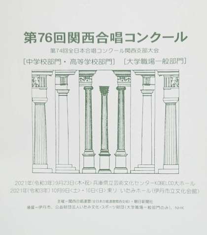 9月23日(木・祝)兵庫県立芸術文化センターKOBELCO大ホールにて「第74回関西合唱コンクール関西支部大会」が開催され、大阪府代表として本校のコーラス部が出場しました。