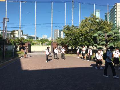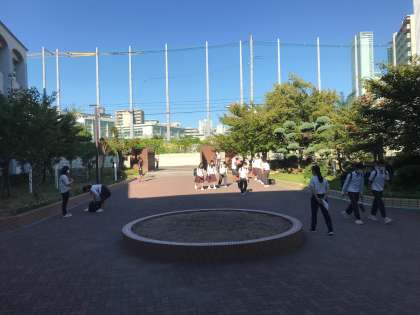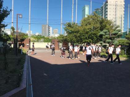 秋晴れの中の登校です。気温も20℃台前半で過ごしやすいです。午後からは、少し気温が上がる予想になっています。