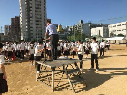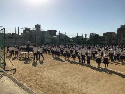 2学期になってはじめての全校生徒が運動場で行なわれました。