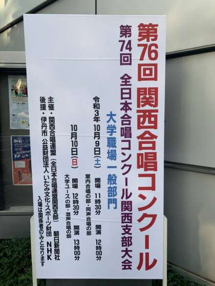 10月9日(土)、関西合唱コンクール大学職場一般部門が行われたました。