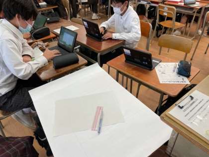 文化祭に向けて、?動画の撮影も終えて次は壁新聞作りです。