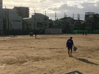 朝から、昨日の雨でできた水たまりの「水抜き」を体育委員さんや部活動の生徒が頑張ってくれました。