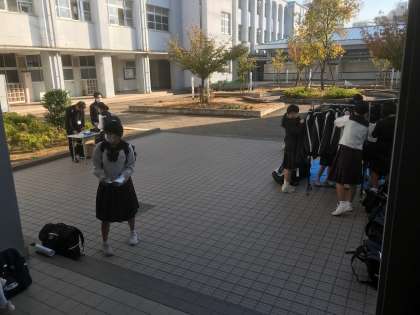 今日・明日の2日間、登校時に防寒着の販売が行われています。