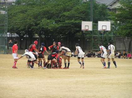 立ち上がりからミスも多く、先にトライを奪われたものの、徐々に本校のペースに持ち込み、見事逆転勝利となりました。