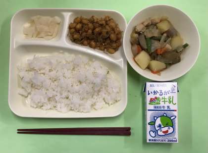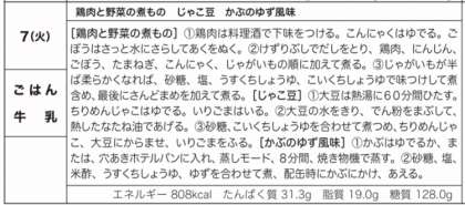 鶏肉と野菜の煮物、じゃこ豆とかぶのゆず風味でした。
