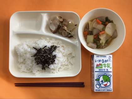 鶏肉のゆず塩焼き、含め煮と肴ひじきそぼろでした。